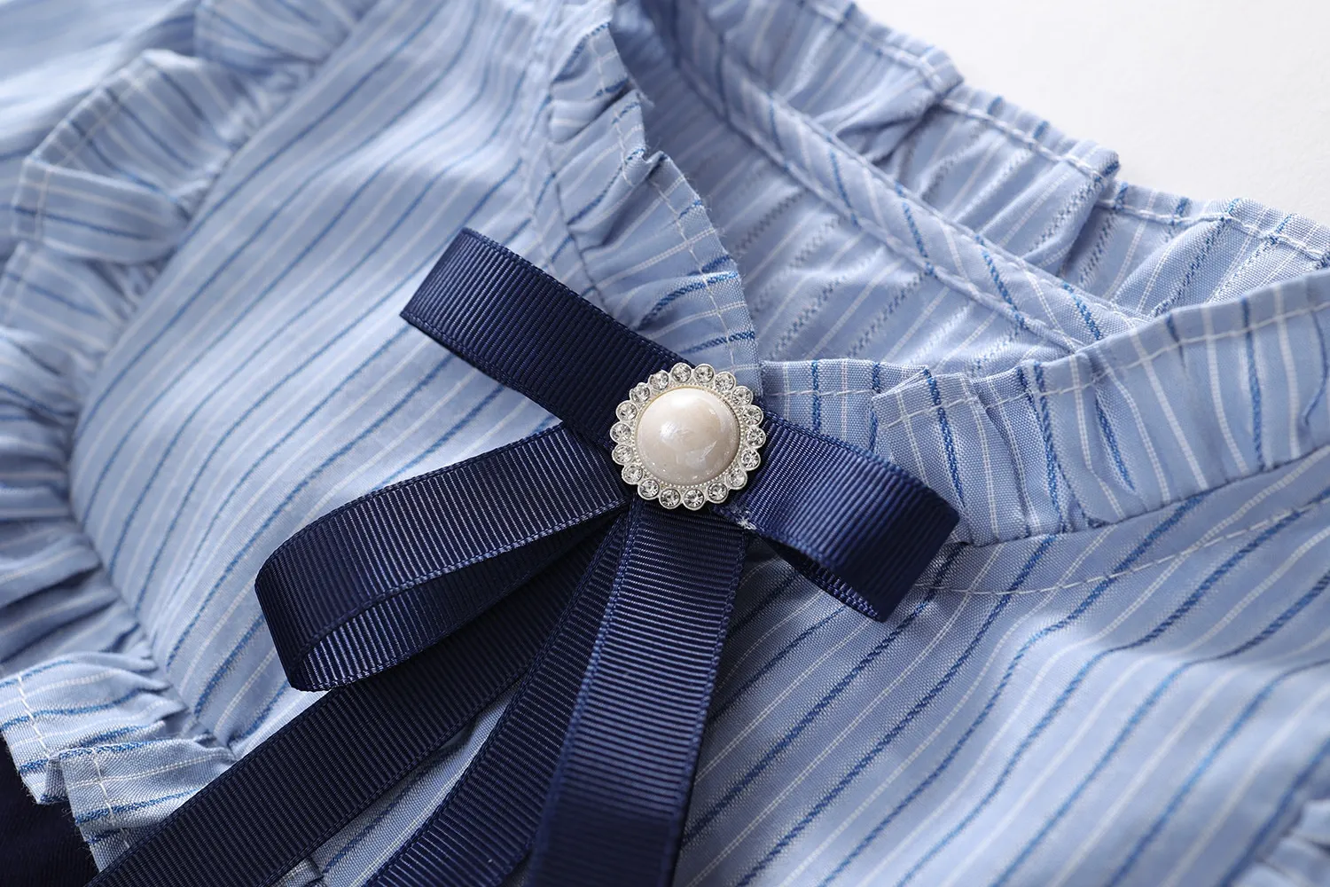If your child loves to stay ahead of the curve when it comes to fashion, the Fake Two-piece Korean Striped Contrast Color Long Sleeve Skirt is a must-have addition to their wardrobe. Inspired by Korean fashion trends, this outfit is designed to be both chic and comfortable, making it the perfect choice for girls who want to show off their sense of style without compromising on comfort.