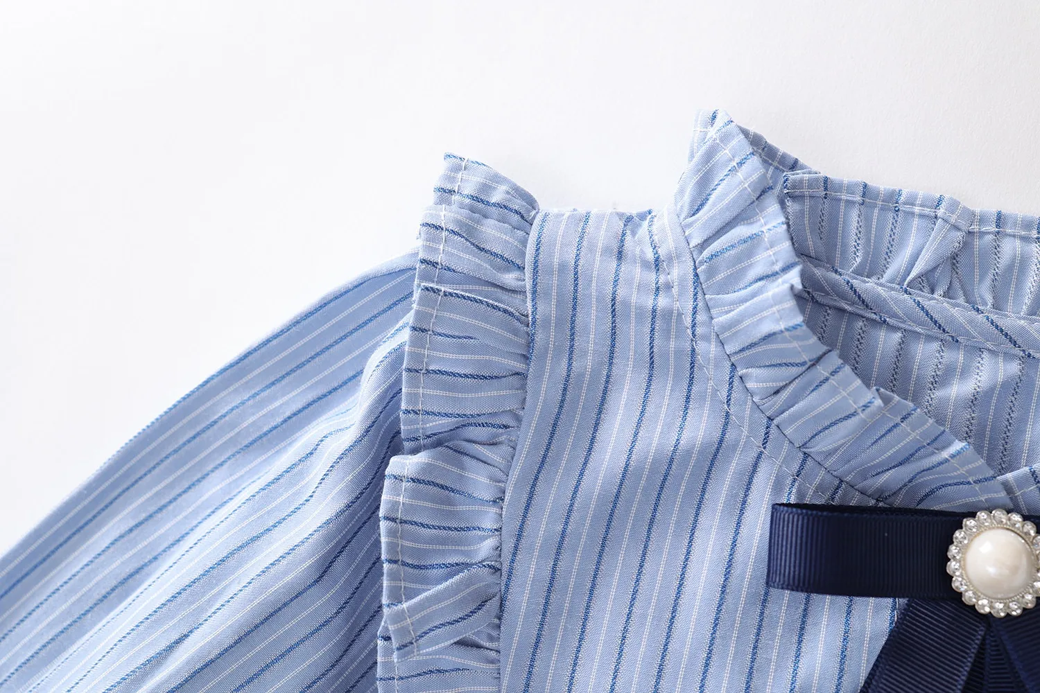 The versatility of the Fake Two-piece Korean Striped Contrast Color Long Sleeve Skirt makes it ideal for various occasions. Whether it's for a day of school, a weekend outing, or a family gathering, this outfit will ensure your little one stays fashionable and comfortable. It's a stylish choice that can easily be dressed up or down with the right accessories.