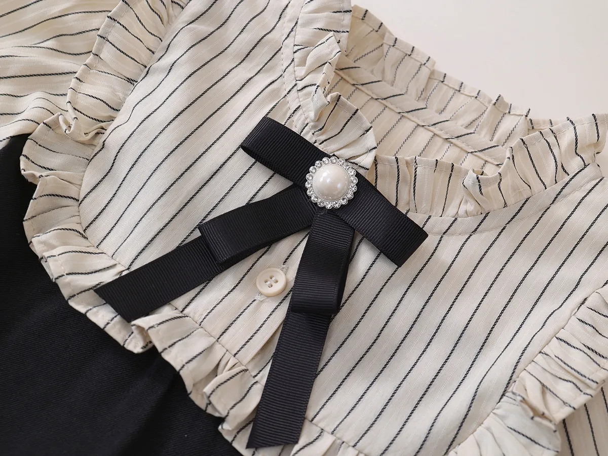 If your child loves to stay ahead of the curve when it comes to fashion, the Fake Two-piece Korean Striped Contrast Color Long Sleeve Skirt is a must-have addition to their wardrobe. Inspired by Korean fashion trends, this outfit is designed to be both chic and comfortable, making it the perfect choice for girls who want to show off their sense of style without compromising on comfort.