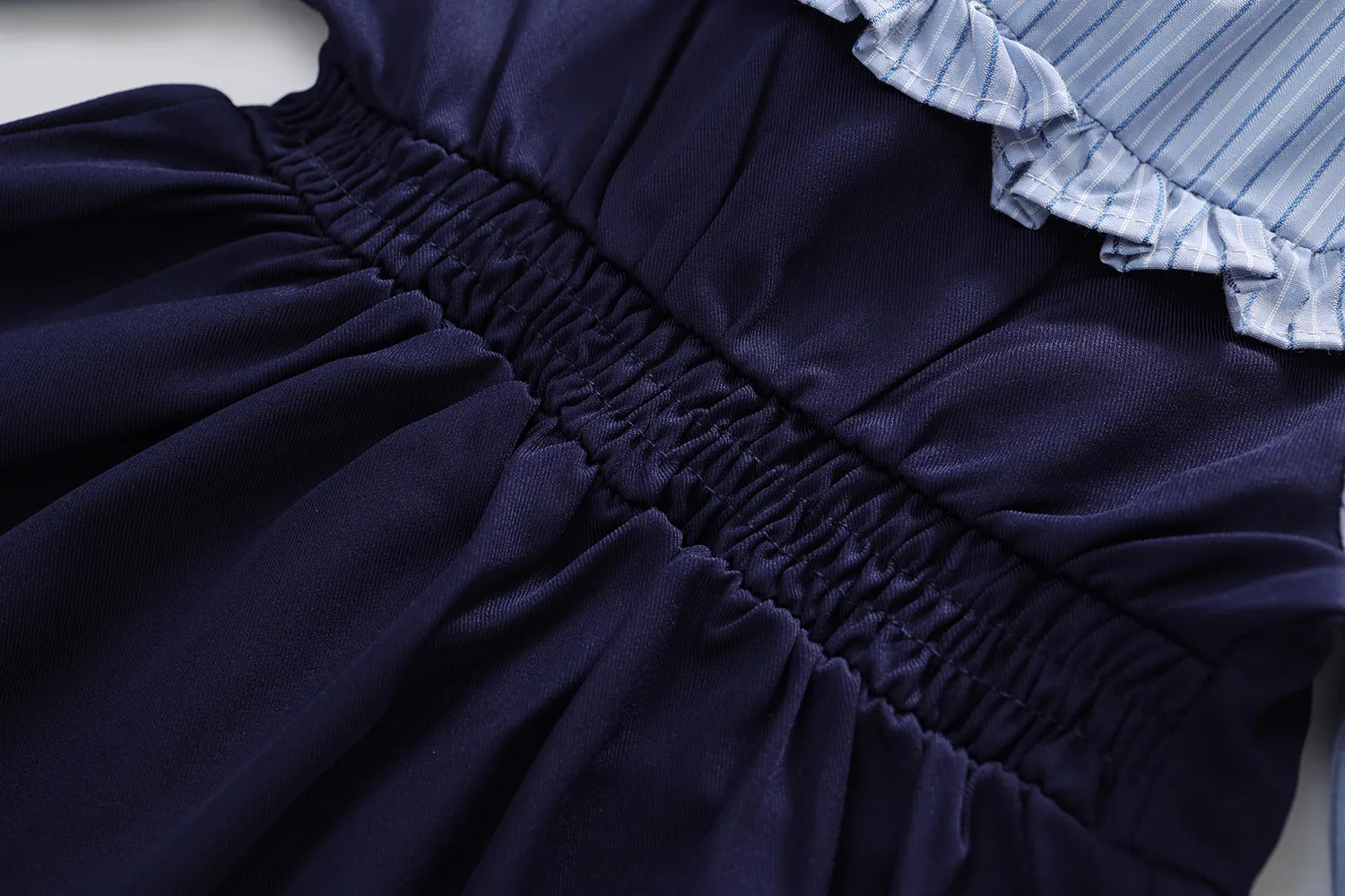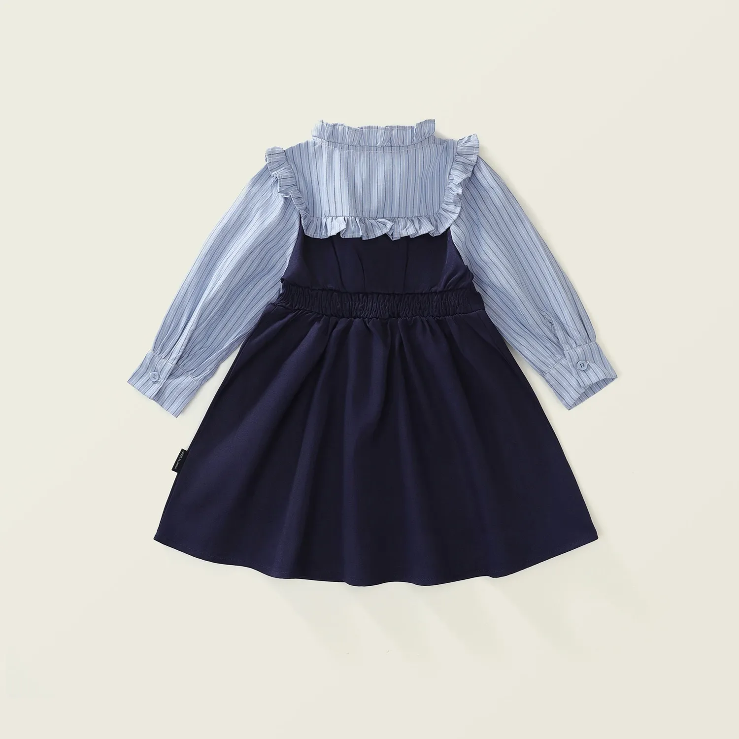 The Fake Two-piece Korean Striped Contrast Color Long Sleeve Skirt features a clever two-piece illusion, combining a long sleeve top with a skirt that looks like a matching set. This style eliminates the need to coordinate separate pieces, making it a go-to outfit for busy mornings when your child wants to look stylish without spending time putting together an outfit.