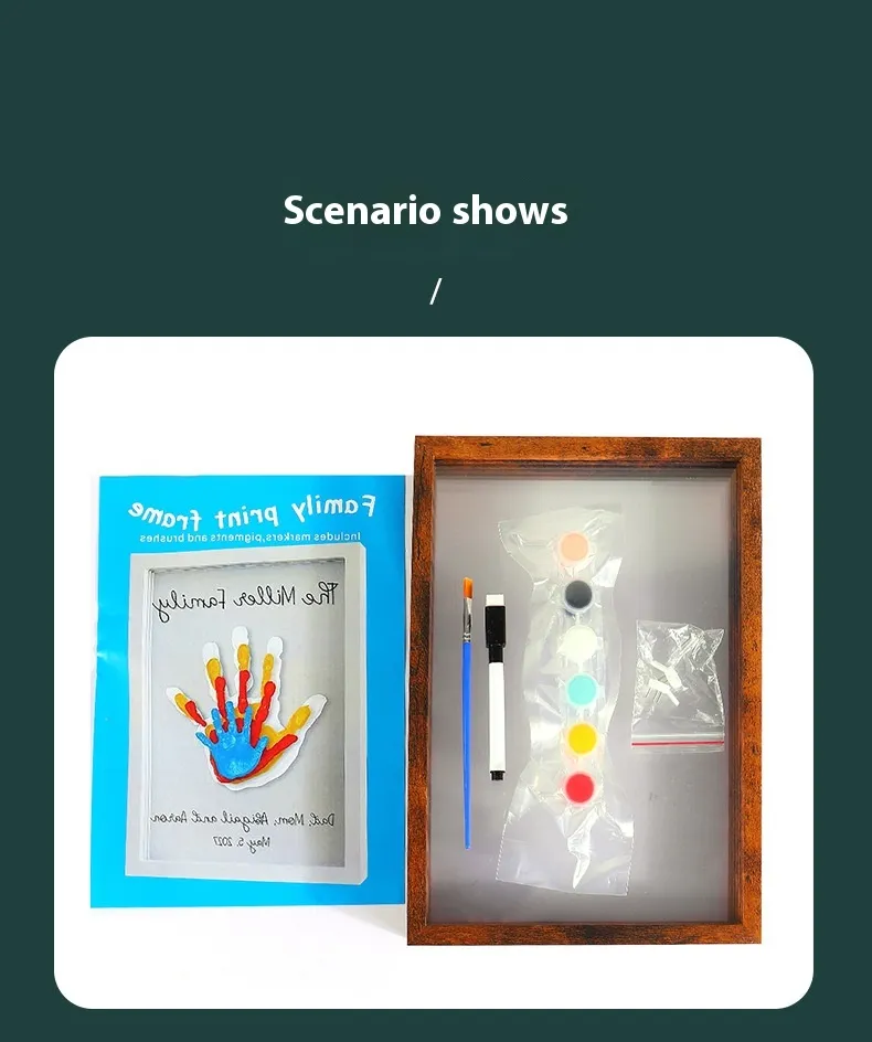 Once completed, the Family Handprint Frame serves as a lasting reminder of connection and growth. As children grow, the preserved handprints become a meaningful record of earlier years, making the frame increasingly sentimental over time. It can be displayed on walls, shelves, or mantels, adding warmth and personal character to living spaces.