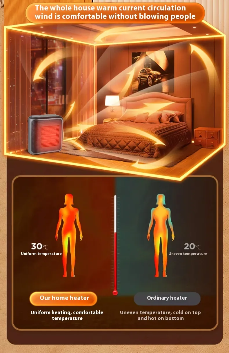 - Rapid Heat Distribution: Quickly heats up small to medium-sized rooms.