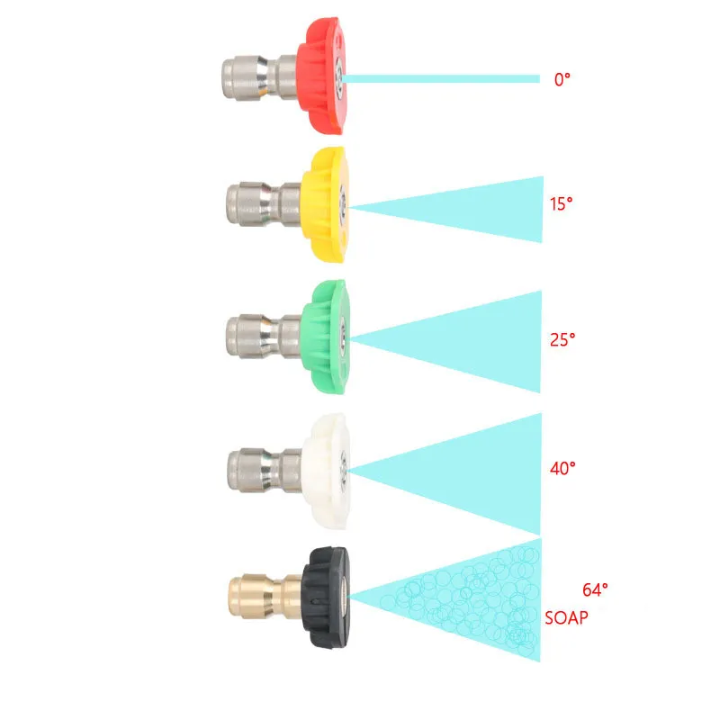 - Adjustable Spray Angles: Nozzles with different spray angles (e.g., 0°, 15°, 25°, 40°) allow for customized cleaning, from concentrated jets for tough grime to wide fans for rinsing.