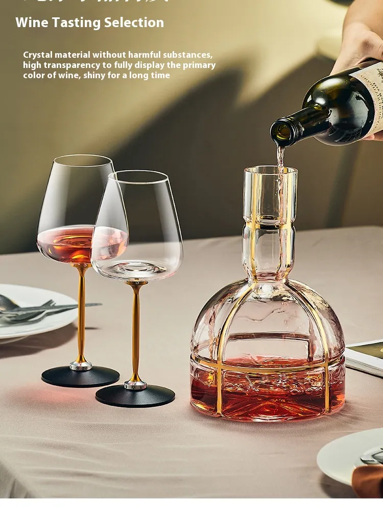 The fancy decanter glass features a stylish, contemporary design that enhances both the aesthetic and sensory experience of drinking wine or