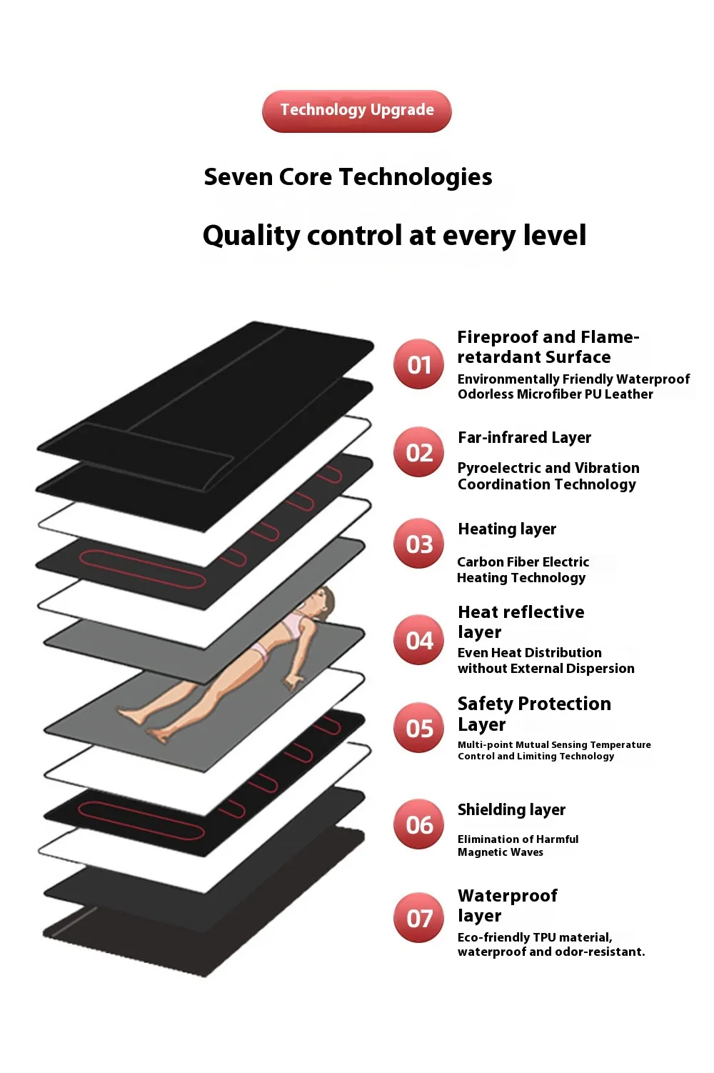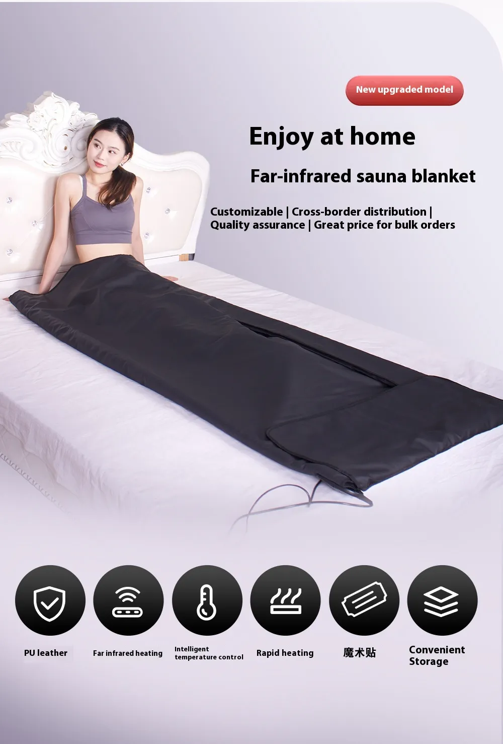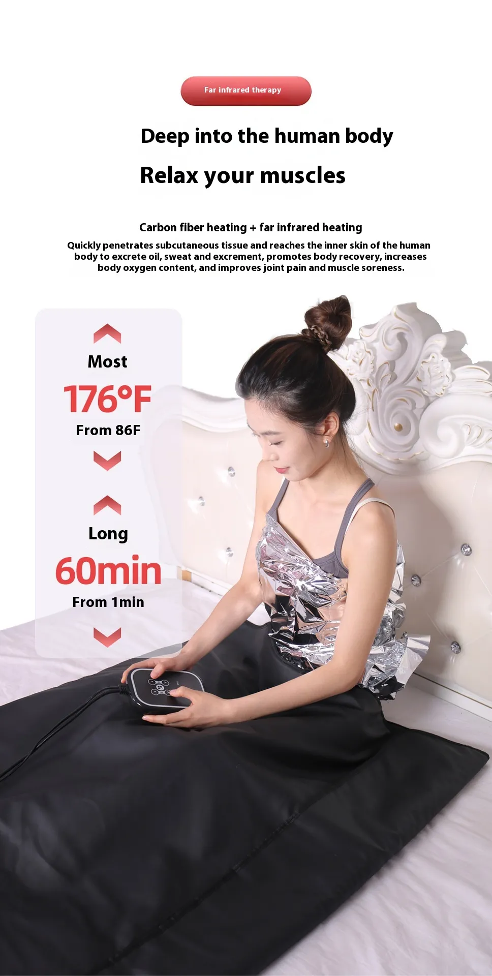 The Far Infrared Sauna Blanket combines thoughtful ergonomic design with advanced thermotherapy. At its core, the device uses far infrared heat technology — a wavelength known for deep, gentle penetration — to elevate body temperature and activate physiological responses similar to traditional sauna use but with greater comfort and efficiency.