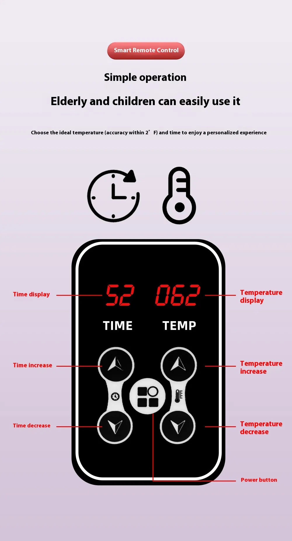 Adjustable Temperature Settings: Personalised control over heat intensity and session length.