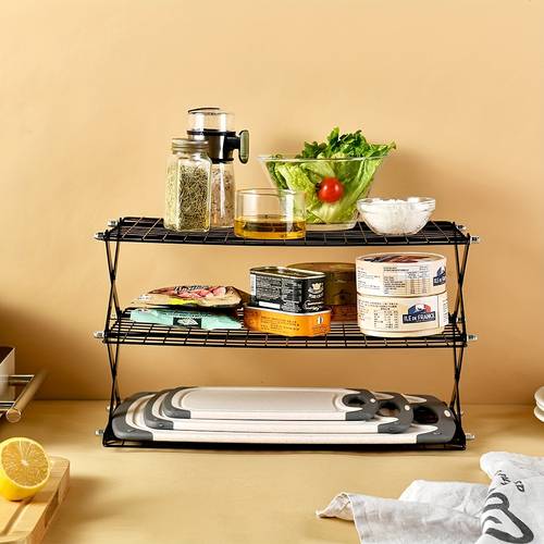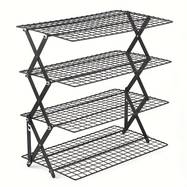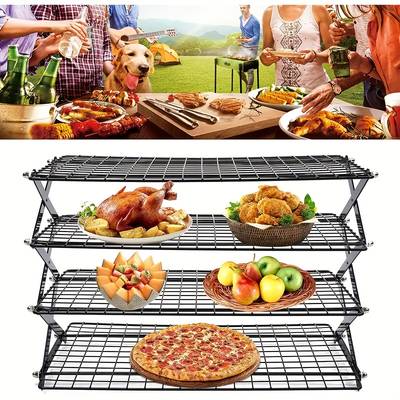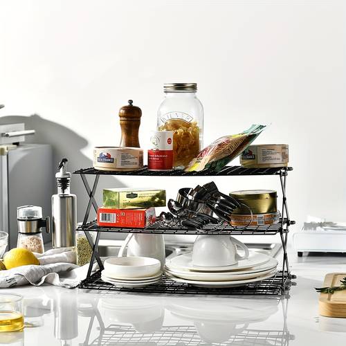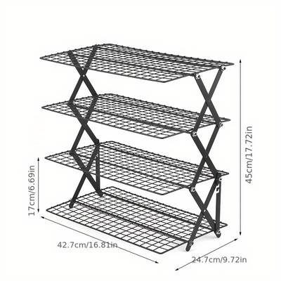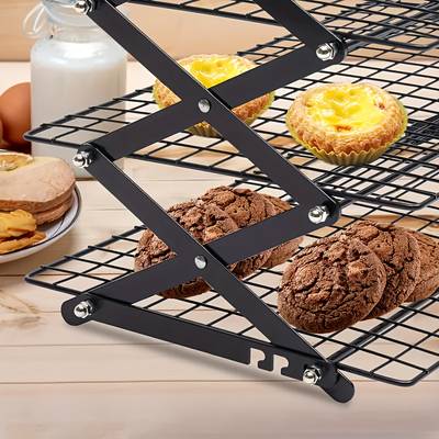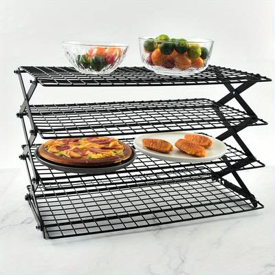 Crafted from sturdy metal, this cooling rack features a tiered shelf design that can be stacked up to 3 or 4 layers, providing more space to cool multiple batches of cookies, pastries, or bread. The foldable structure ensures easy storage, while the non-slip base keeps the rack steady on countertops.