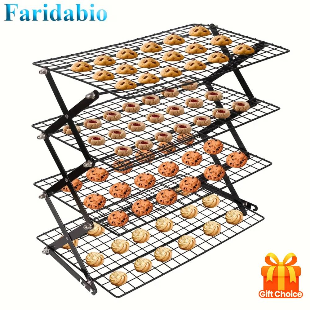 The FARIDABIO 3/4 Layer Stackable Folding Cooling Rack is a heavy-duty, versatile rack perfect for cooling baked goods and serving snacks in both indoor and outdoor settings. With its metal construction, non-slip base, and space-saving foldable design, it’s a reliable tool for bakers, outdoor enthusiasts, and picnickers in NZ.