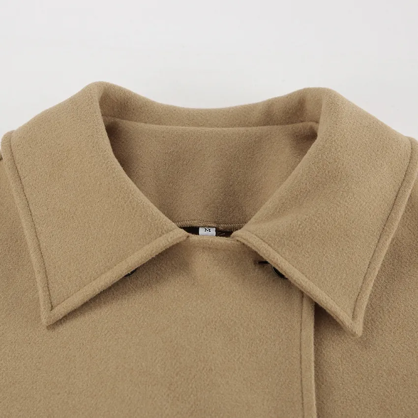 This coat isn't just about looks—it’s also designed for practicality. The relaxed fit allows for layering, so you can wear it over sweaters or heavier tops without feeling restricted. The lapel collar and loose sleeves give it a laid-back, elegant vibe, making it a great option for both workdays and weekends.