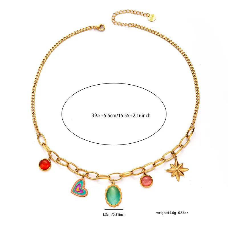 Color: colorful candy love gem necklace, round flower necklace, gold XINGX necklace, Gold Peach heart necklace, love string necklace, bow
