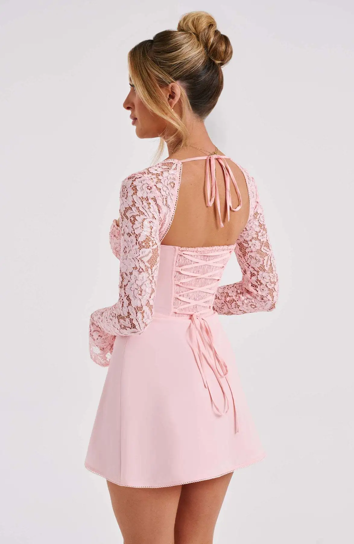 Fashion Corset Lace Long Sleeve Dress Sexy Y2K Backless Lace Up Short Dresses Womens Clothing