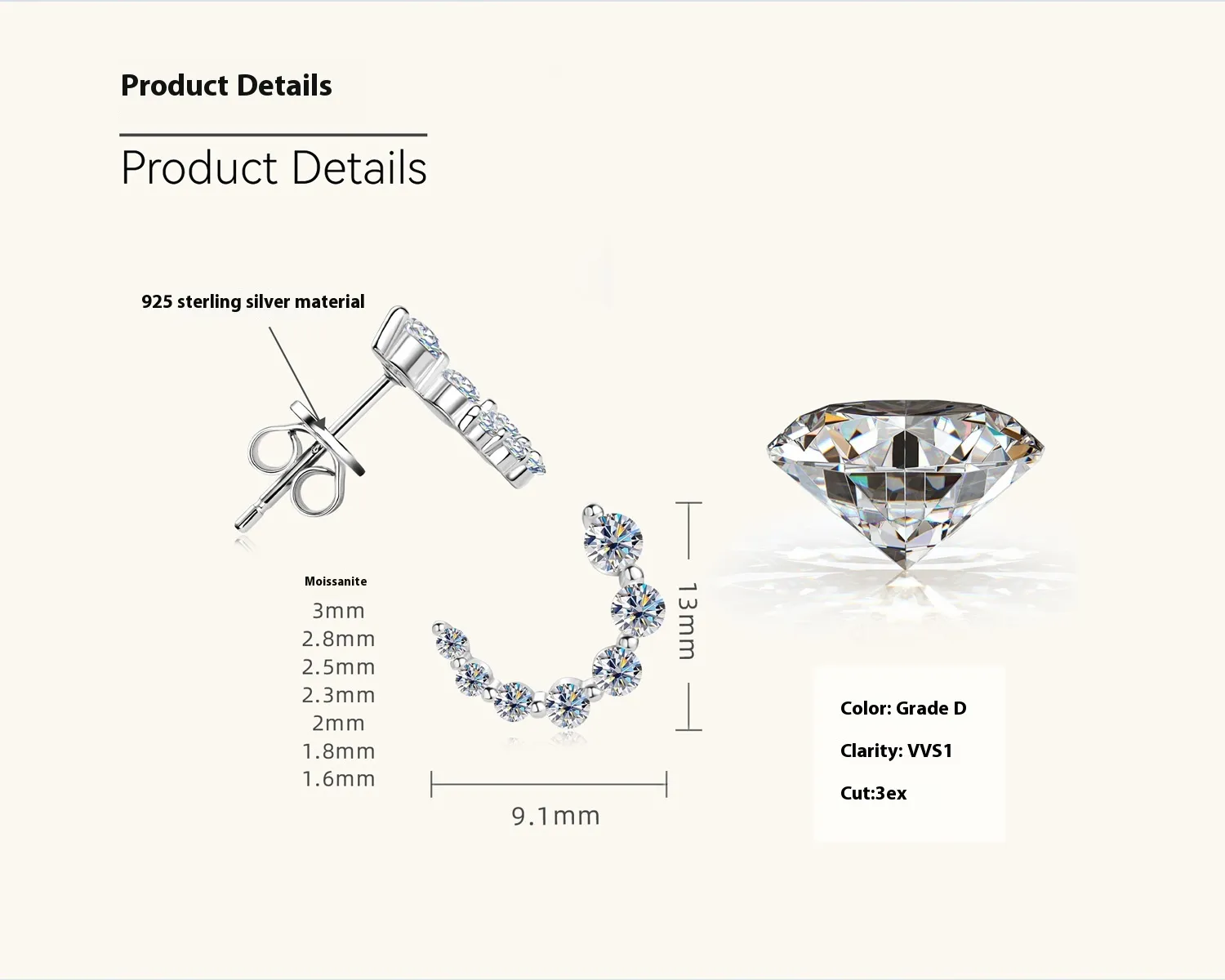The C-shaped design of the earrings is both modern and classic, wrapping gently around your earlobe for a secure and comfortable fit. The sleek, curved shape adds a touch of elegance and sophistication to any look, making them ideal for both formal occasions and casual wear.