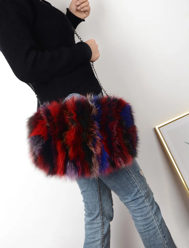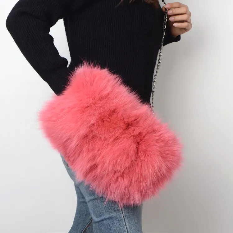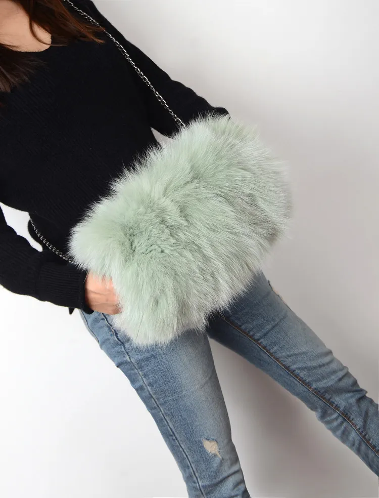 Fashion Fox Fur Warm Hand Warm Fox Fur Fur Women's Shoulder Chain Crossbody Bag