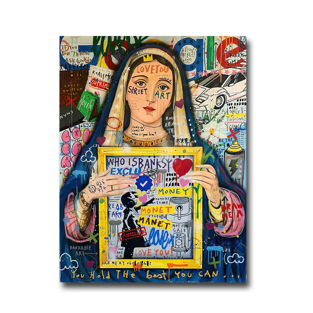Fashion Graffiti Art Poster Girl Hunting Balloons Street Art Canvas Painting