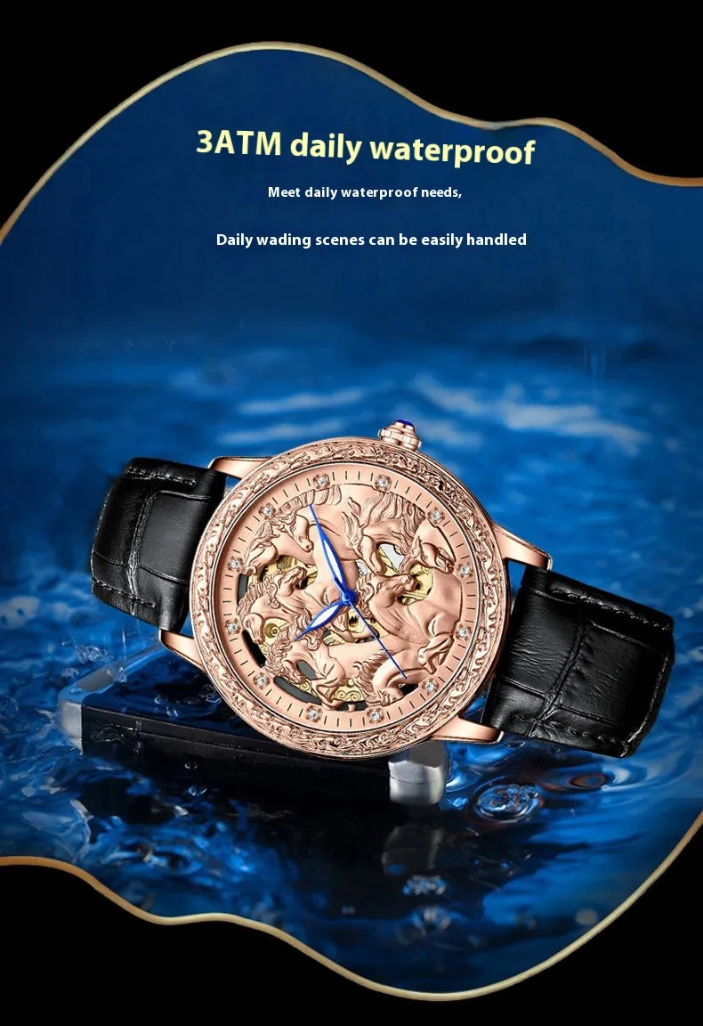 This watch is the epitome of sophistication and practicality, combining stunning aesthetics with exceptional functionality. Its hollowed-out design sets it apart from standard timepieces, while its waterproof and automatic features make it a versatile companion for every aspect of life.