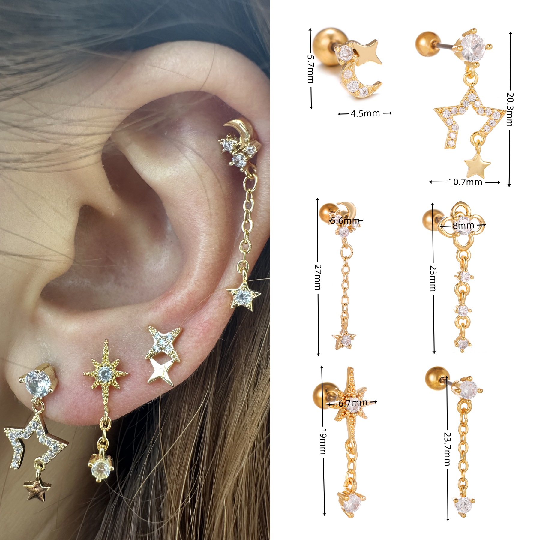 - Celestial Design: The Fashion Jewelry Piercing Star features a stunning star-shaped design, adding a touch of celestial elegance to your style.