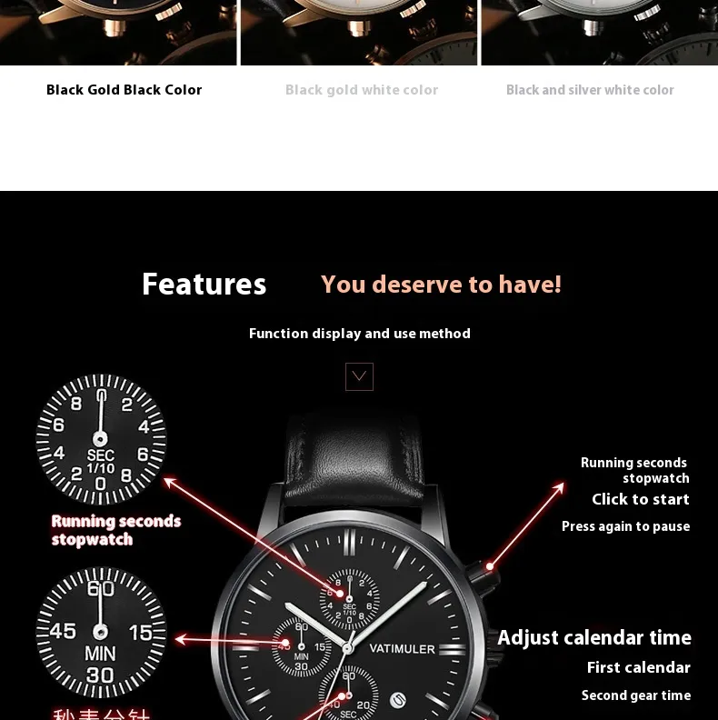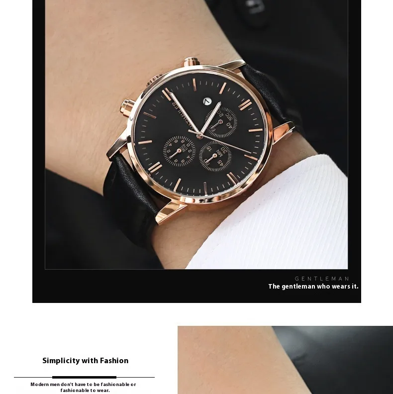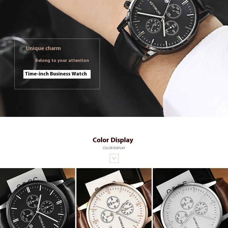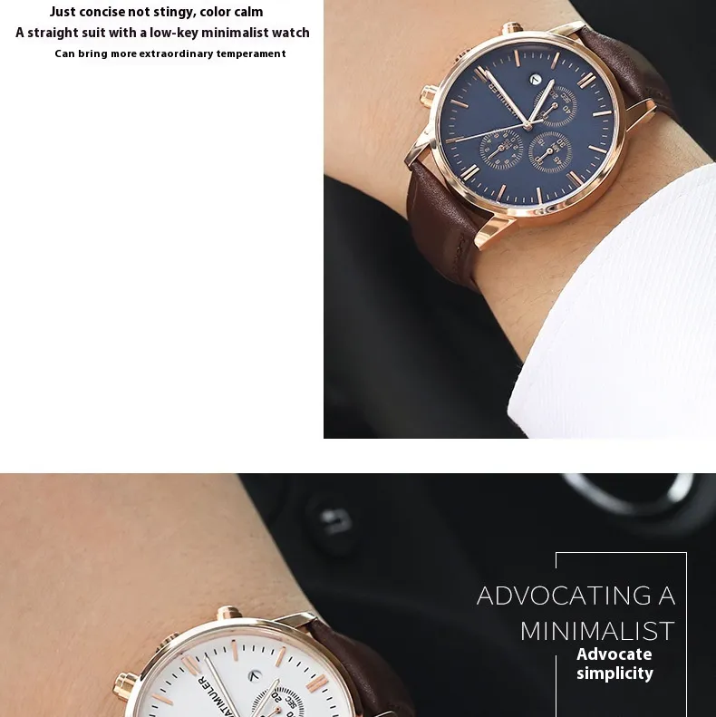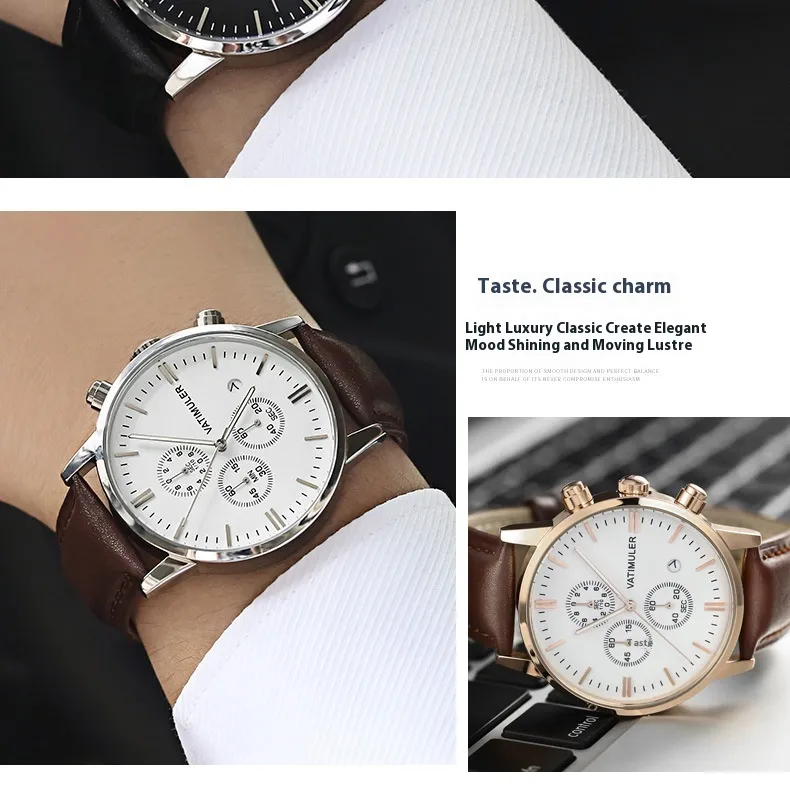 The watch boasts a polished stainless steel case, designed to withstand the wear and tear of everyday use while maintaining its sleek, fashionable look. The minimalist dial is accented with bold hour markers and hands, making it easy to read while adding a touch of refined style. The multifunctional sub-dials provide added convenience, allowing you to track time with precision during meetings, travel, or casual outings. The Korean-inspired design blends traditional craftsmanship with contemporary aesthetics, creating a versatile watch that complements both formal business attire and casual outfits.