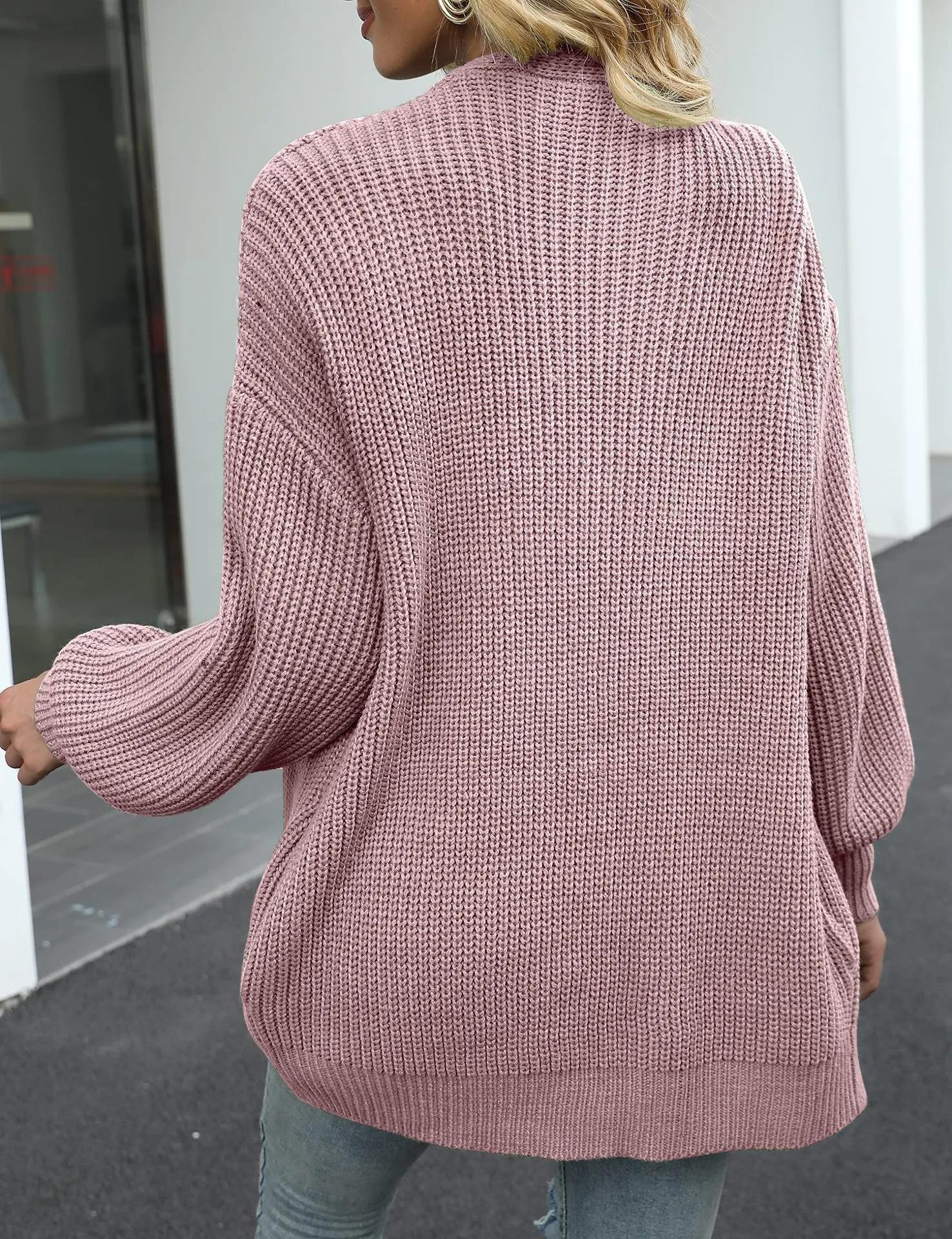 Fashion Lantern-sleeved Sweater With Pockets Casual Loose Solid Knit Cardigan Autumn Tops Womens Clothing
