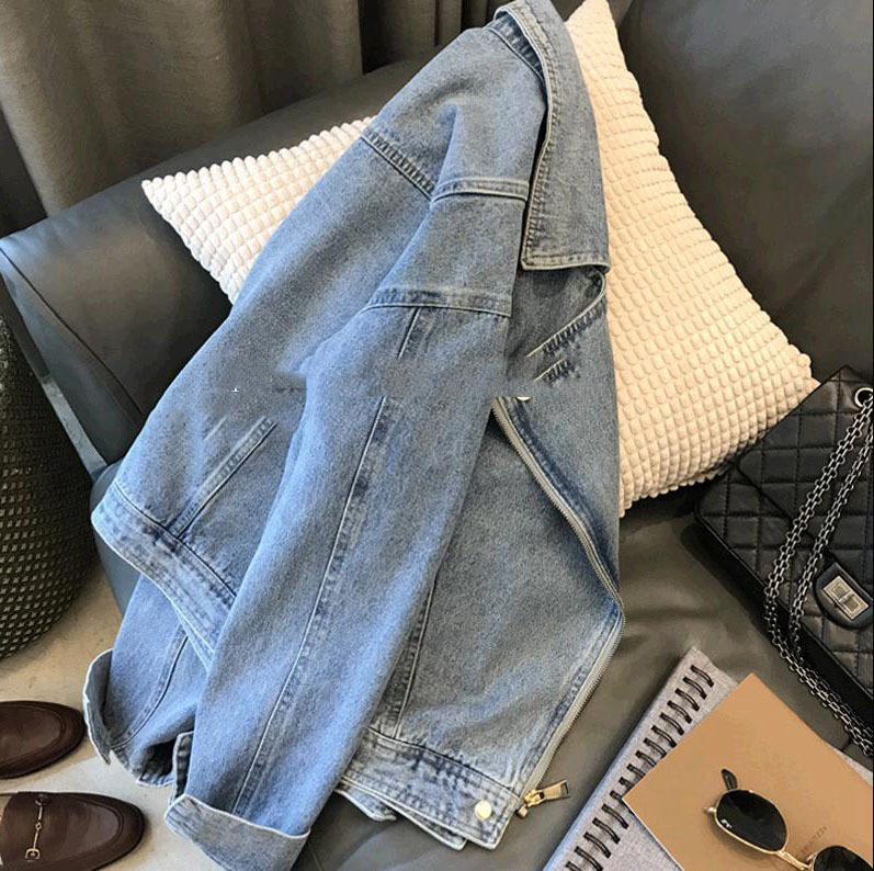 Fashion Motorcycle Lapel Long-sleeve Zipper Denim Jacket