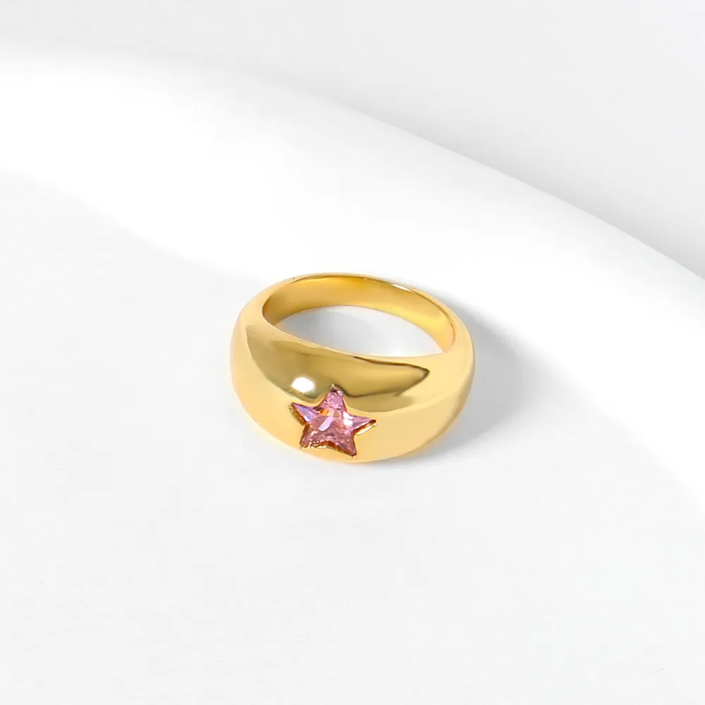 Color: F4-5 Gold Pink Five Star ring, F4-6 White Gold Pink Five Star ring