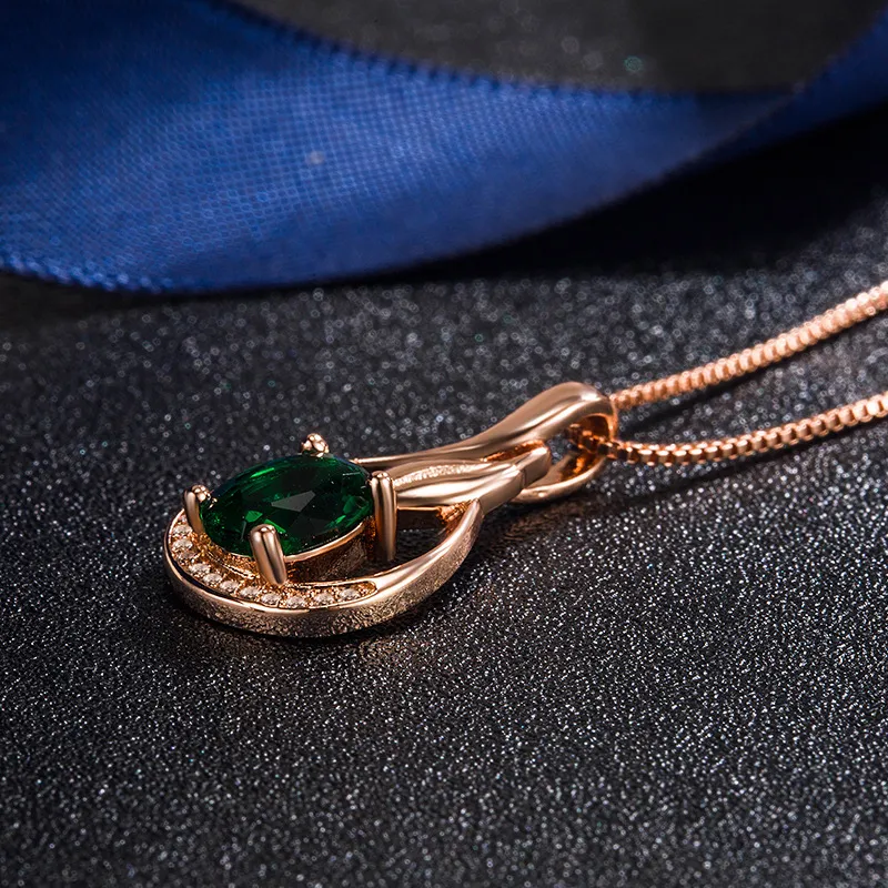 Fashion Rose Gold Drop Emerald Pendant