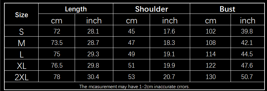 Size Information:
