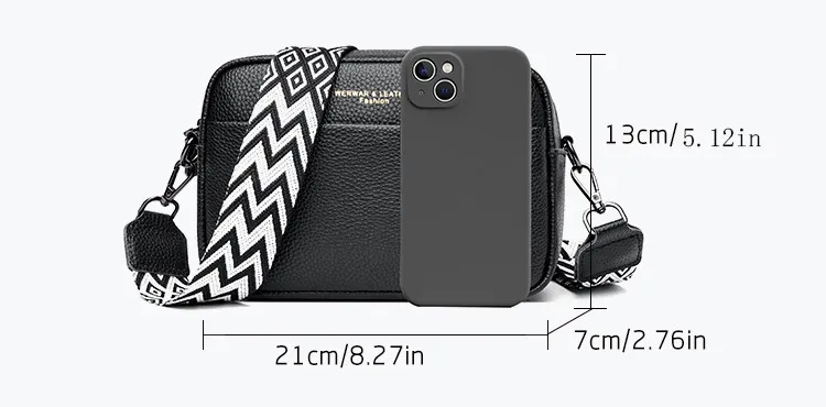 This stylish crossbody bag is the perfect travel companion. Its compact size and comfortable shoulder strap make it ideal for sightseeing, shopping, or weekend trips.