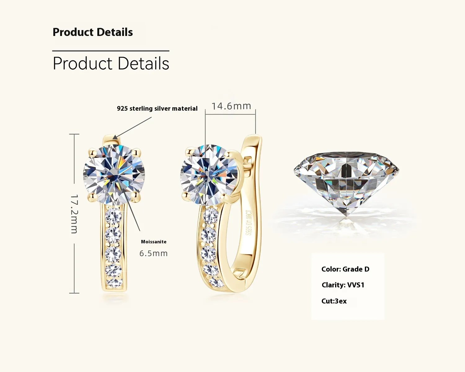 The earrings are crafted with a high-quality 925 sterling silver setting, ensuring durability, shine, and resistance to corrosion. Sterling silver is known for its strength, making it an ideal choice for daily wear. The silver setting enhances the Moissanite’s sparkle, ensuring your earrings will continue to shine brightly for years.