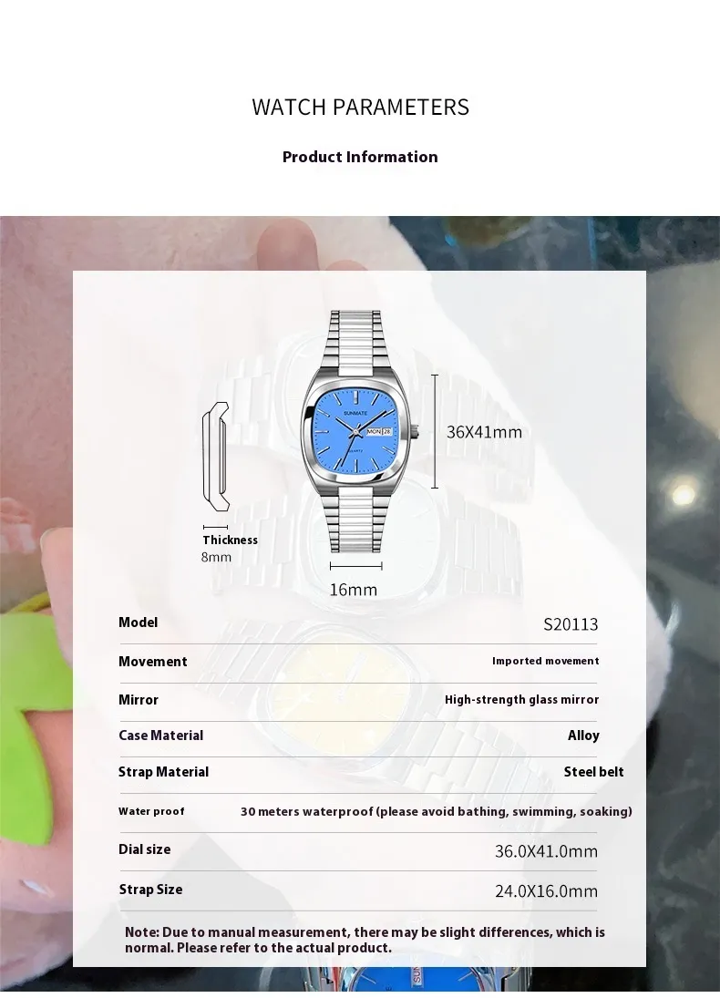 - Color Options: White shell dial with silver or gold steel belt (depending on model)