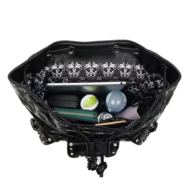 construction. Ideal for casual outings, concerts, or as an everyday accessory, this backpack adds a rebellious yet glamorous touch to any