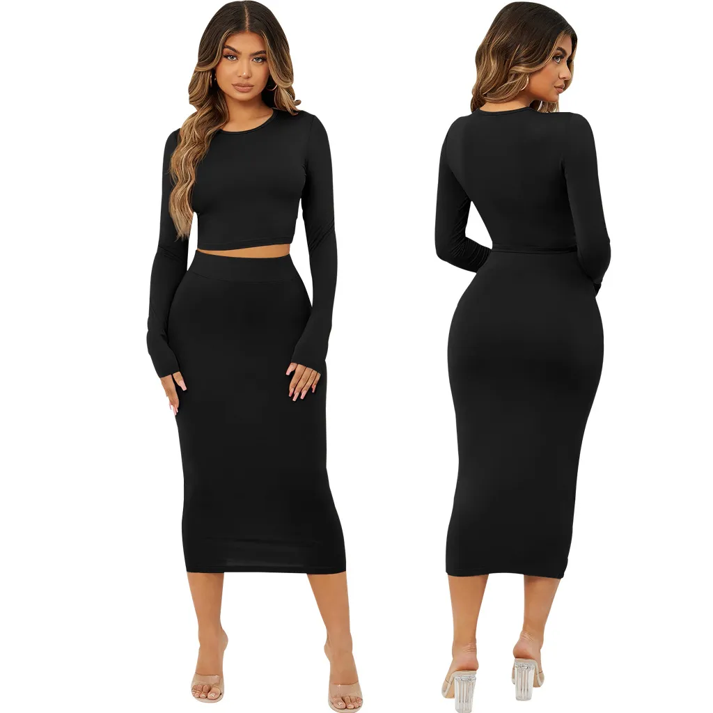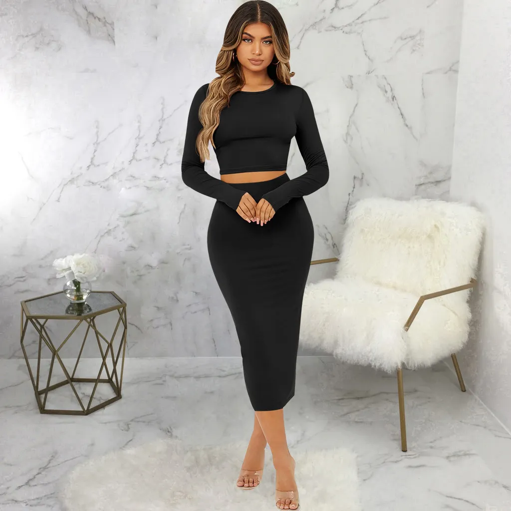 Fashion Solid Color Tight Two-Piece Set: Stylish, Sleek, and Versatile