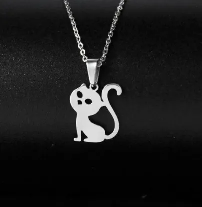 Fashion Stainless Steel Hollow Cat Pendant