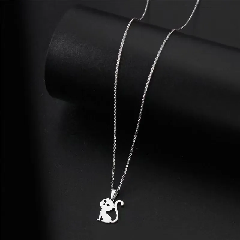 Fashion Stainless Steel Hollow Cat Pendant