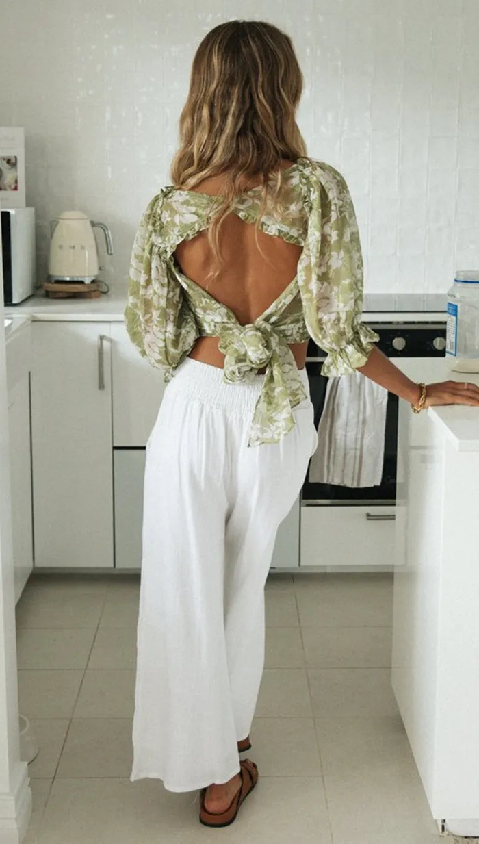 The Fashion V-neck Ruffled Back Print T-shirt can be easily paired with different bottoms such as jeans, skirts, or shorts,