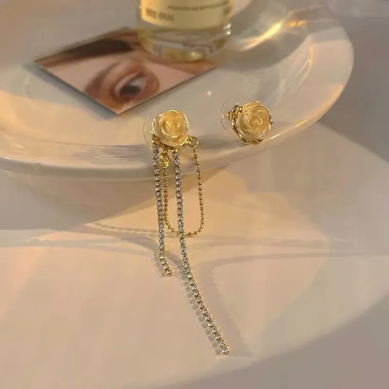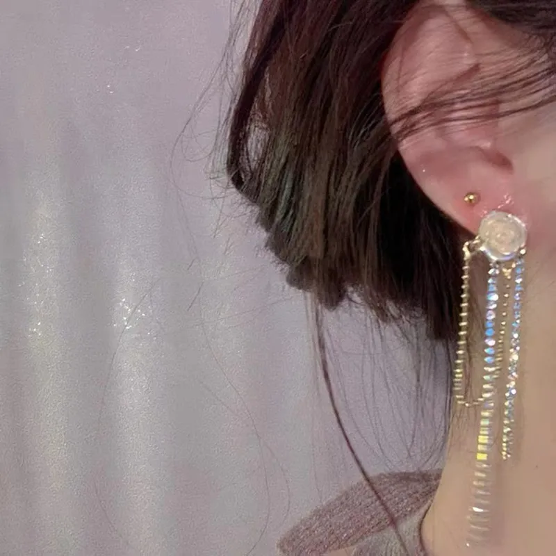 Fashion White Rose Blossom Earrings