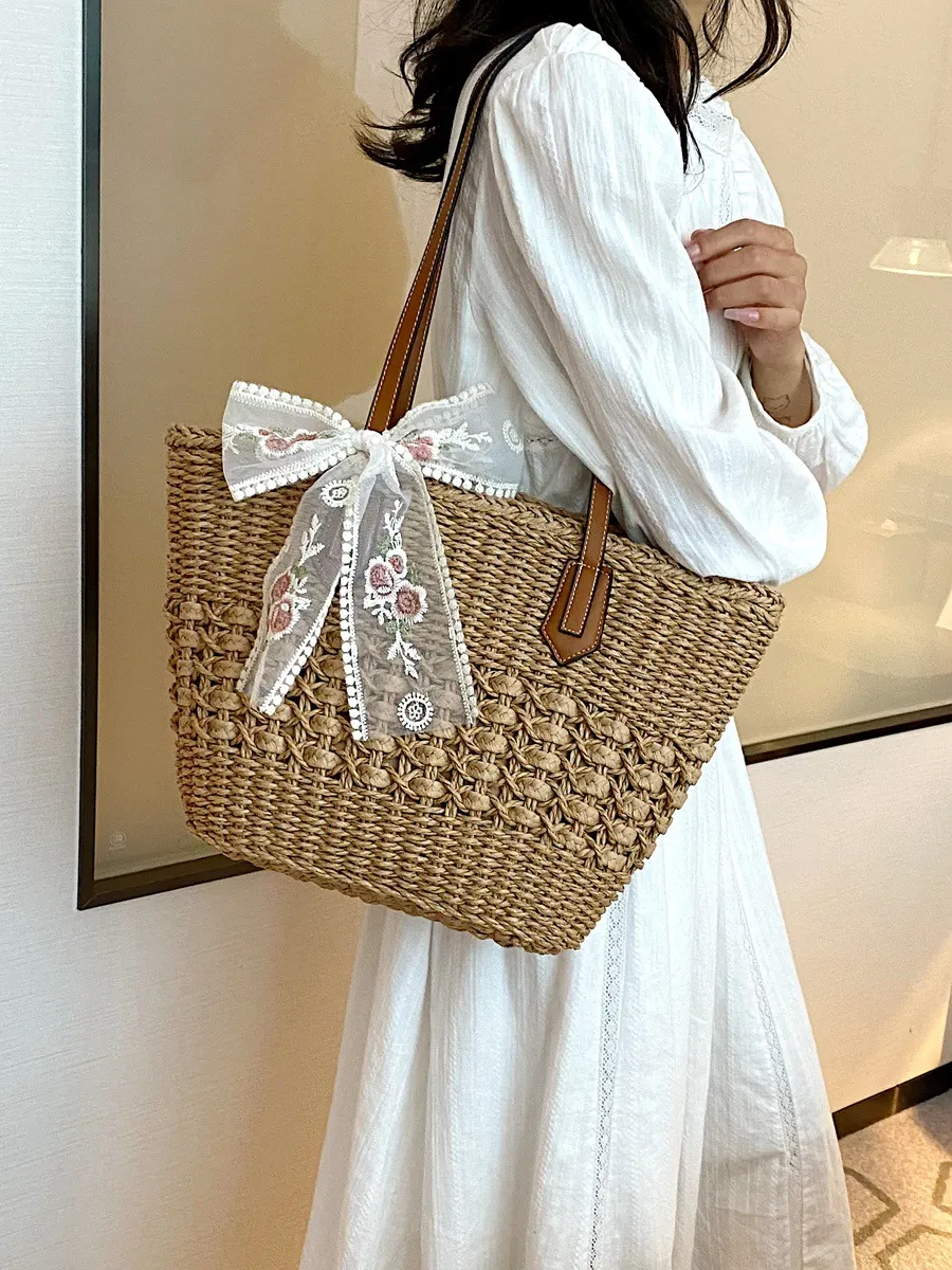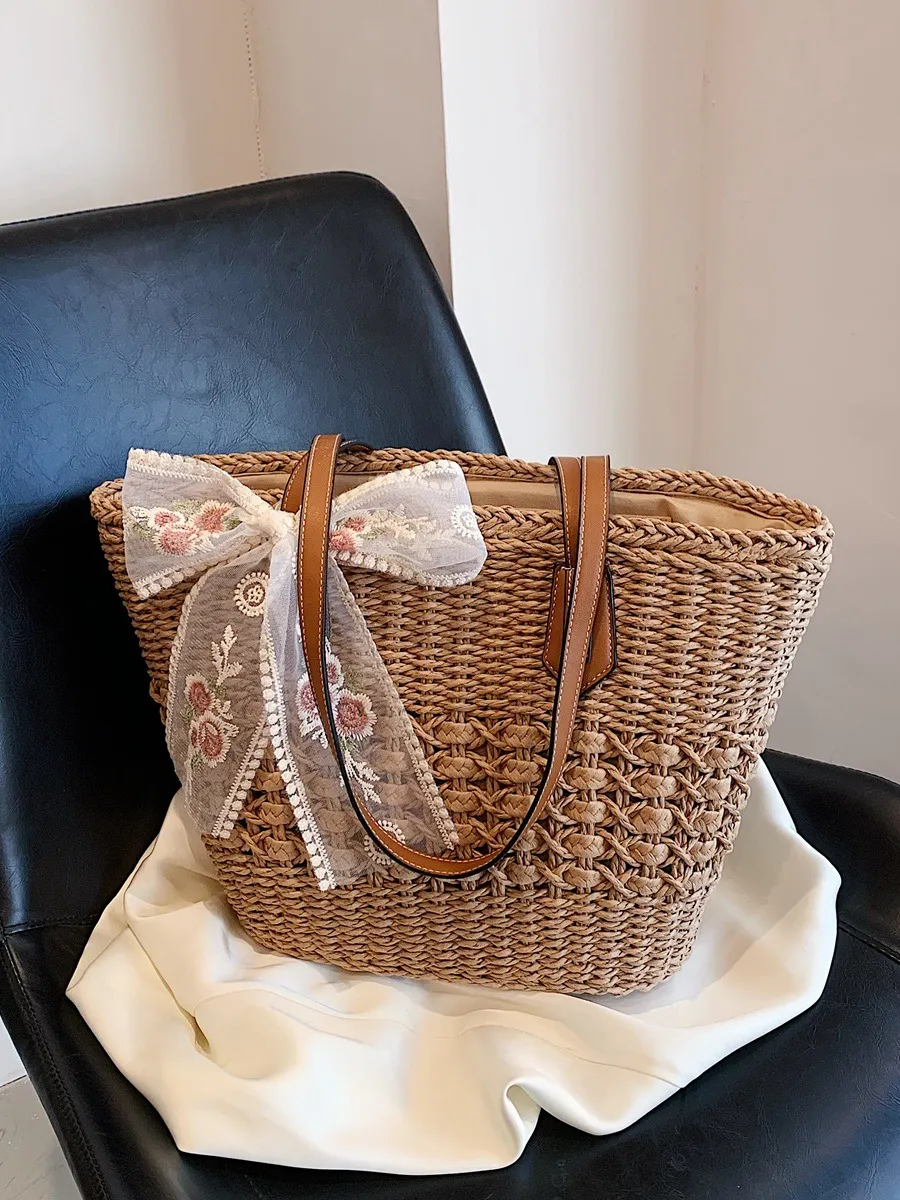 With its hollow woven design, this tote bag can easily transition from a casual daytime accessory to an evening outing companion. Its neutral tones or vibrant color options ensure it complements a wide range of outfits, making it suitable for any occasion—whether you're attending a lunch date, a shopping trip, or a weekend getaway.