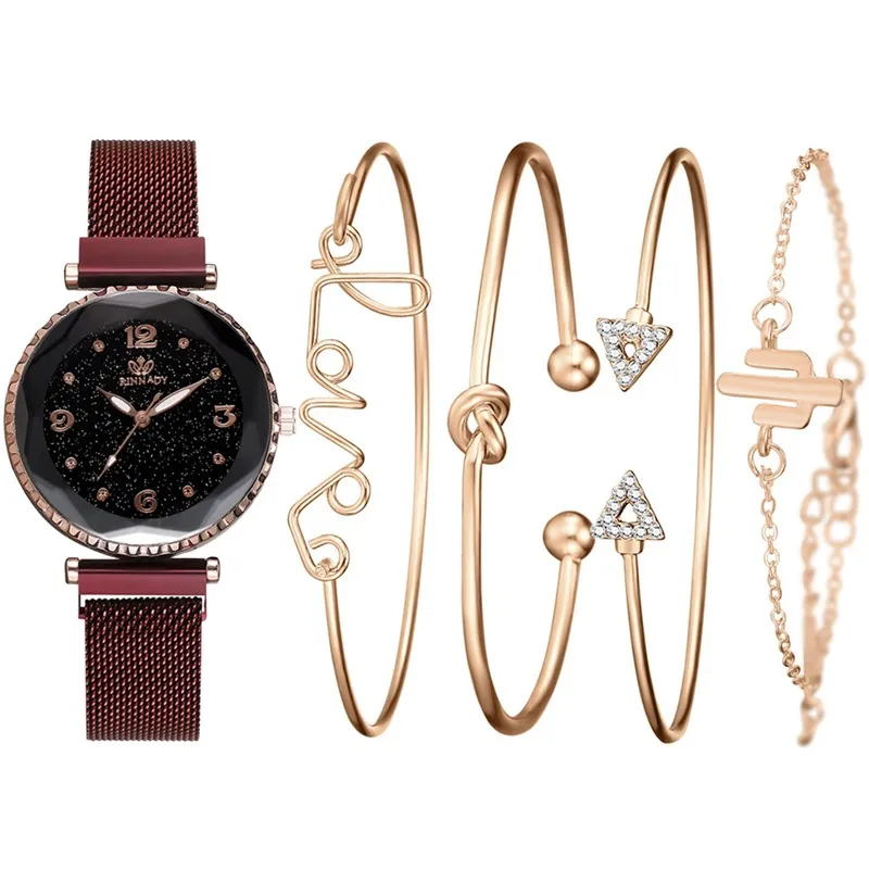 In addition to the stunning timepiece, this set includes matching bracelets that bring a trendy and modern touch to your wrist. The bracelets can be worn individually or stacked together to create a customized look. Made from high-quality materials such as stainless steel, alloy, or genuine leather, the bracelets are designed for comfort, durability, and style. Whether you prefer a sleek, minimalist design or a more embellished, statement-making style, the set offers a range of options to suit your personal taste.