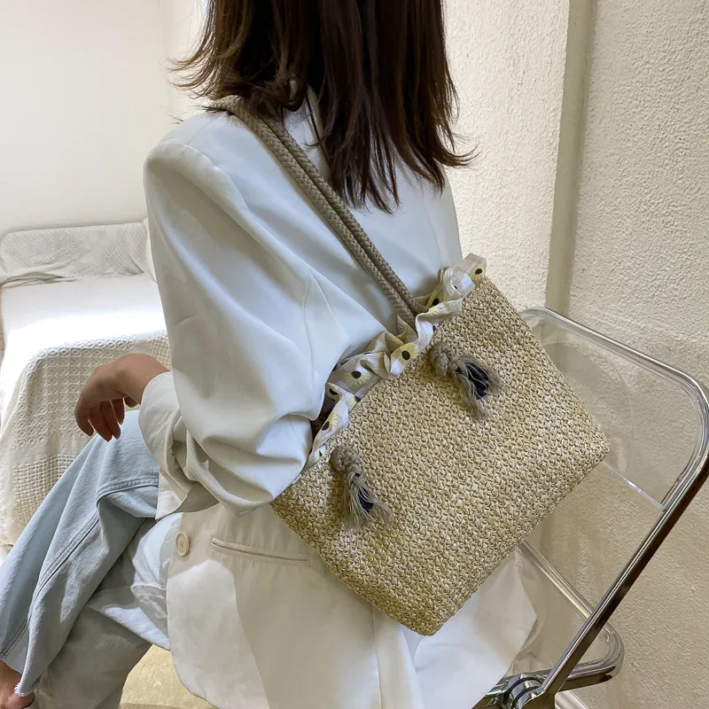 Fashion Women's Summer Straw Bag Tote Shoulder Bags Large Wicker Woven HandBag Female New Braided Raffia Pouch Beach Bag
