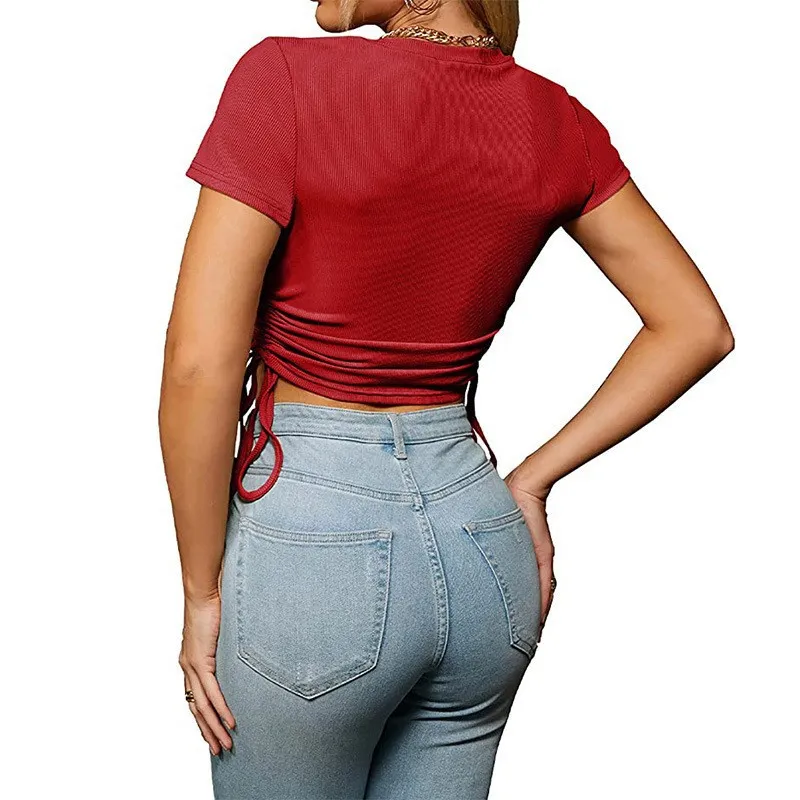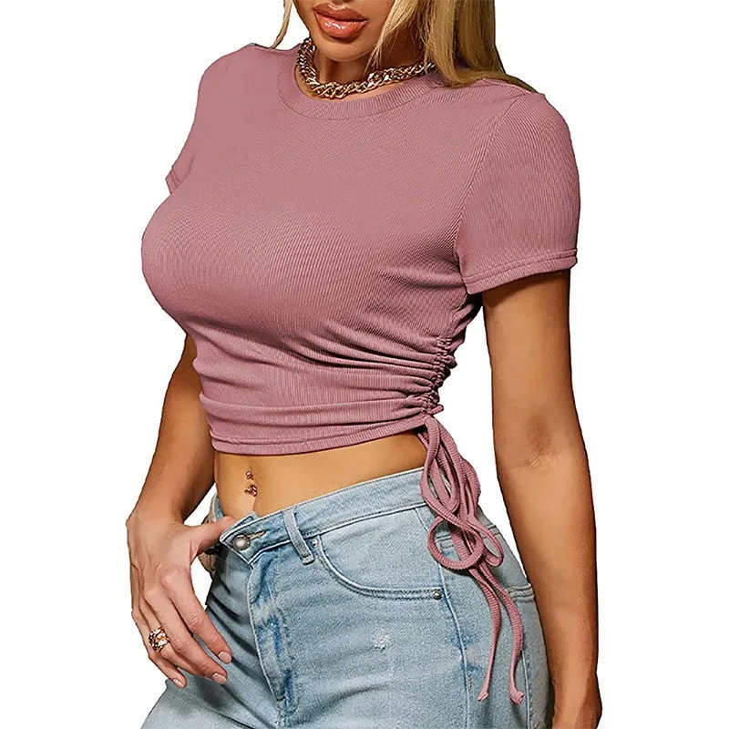Women’s Summer Midriff-Baring Round Neck Short Sleeve Top