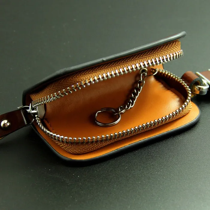 Fashion Zipper Genuine Leather Car Key Case