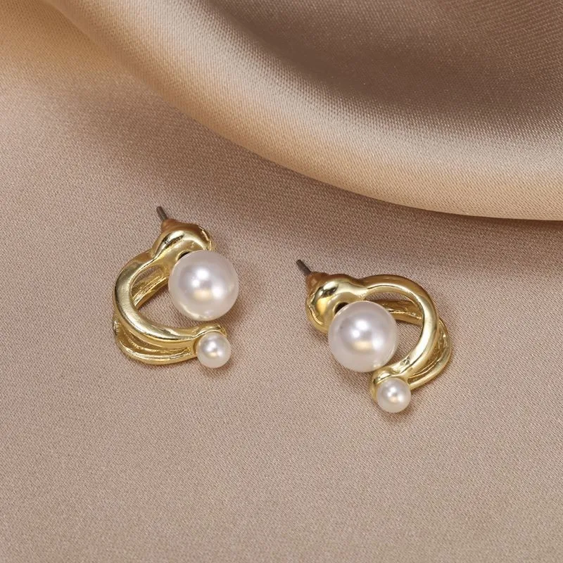 Fashionable And High-end Pearl Earrings, French Niche Retro Light Luxury Earrings, Women's Simple And Versatile Pearl Earrings