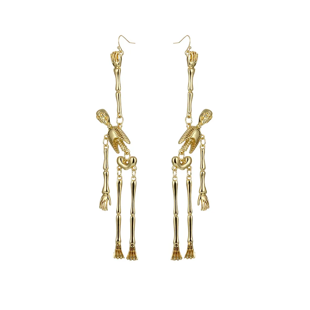 Fashionable Metal Skull Skeleton Pendant Earrings