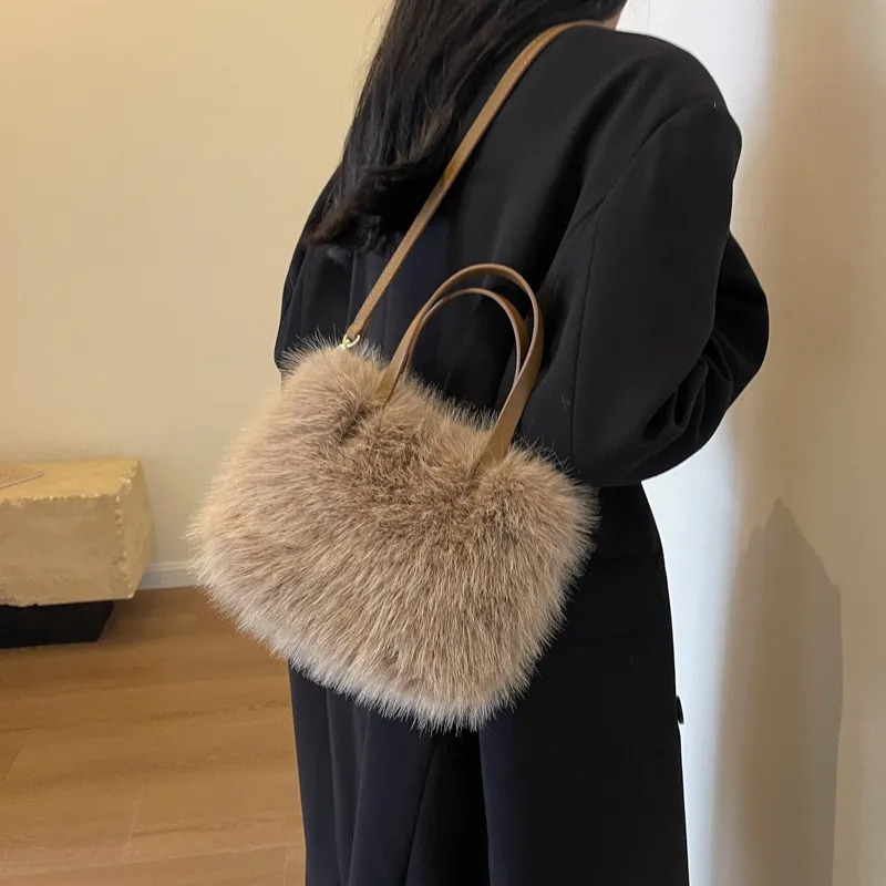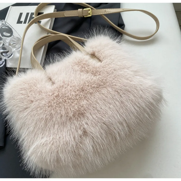 H1: Embrace Cozy Chic with the Faux Fox Plush One-Shoulder Crossbody Bag