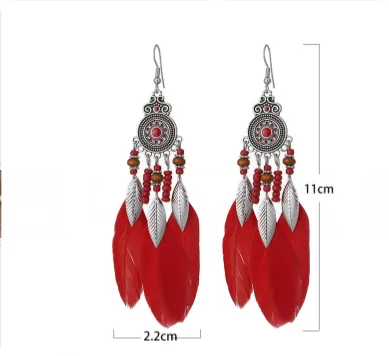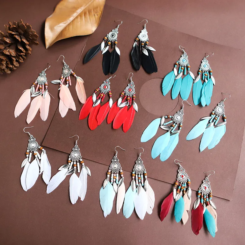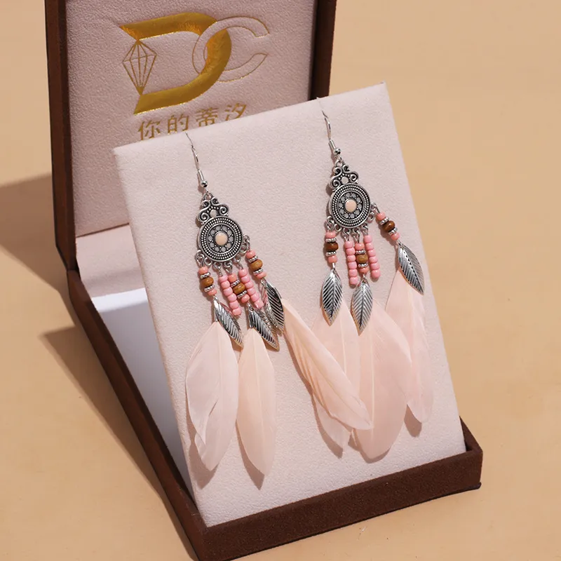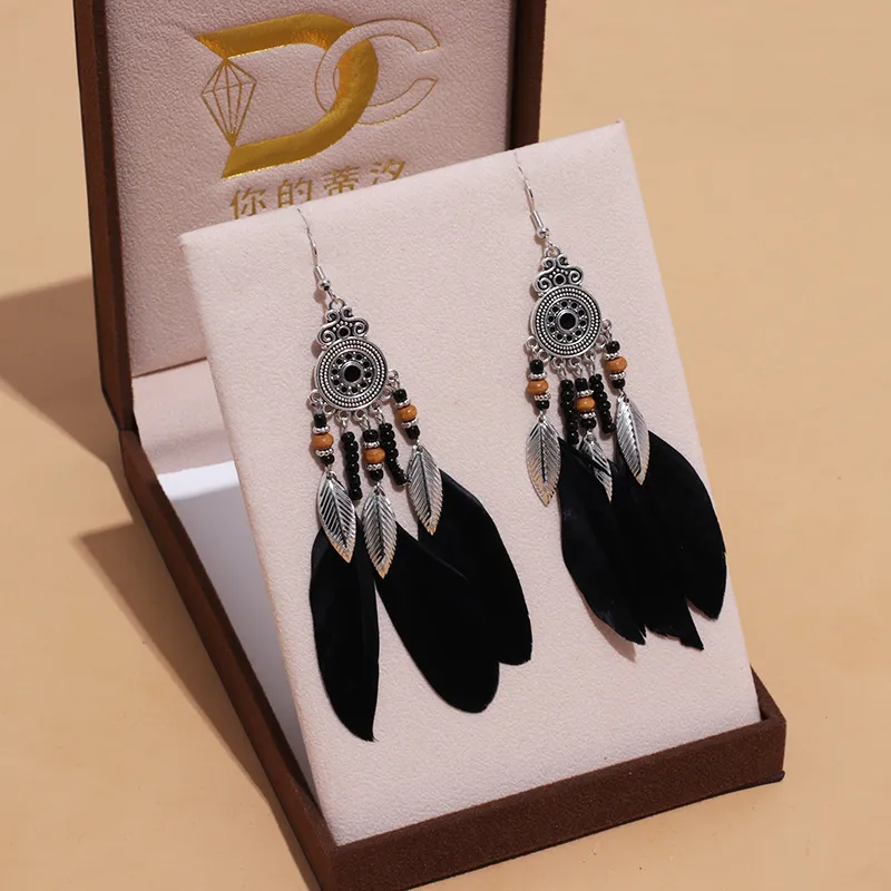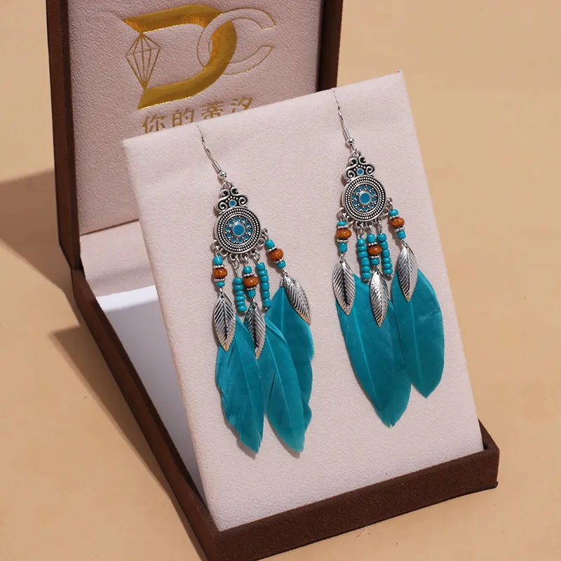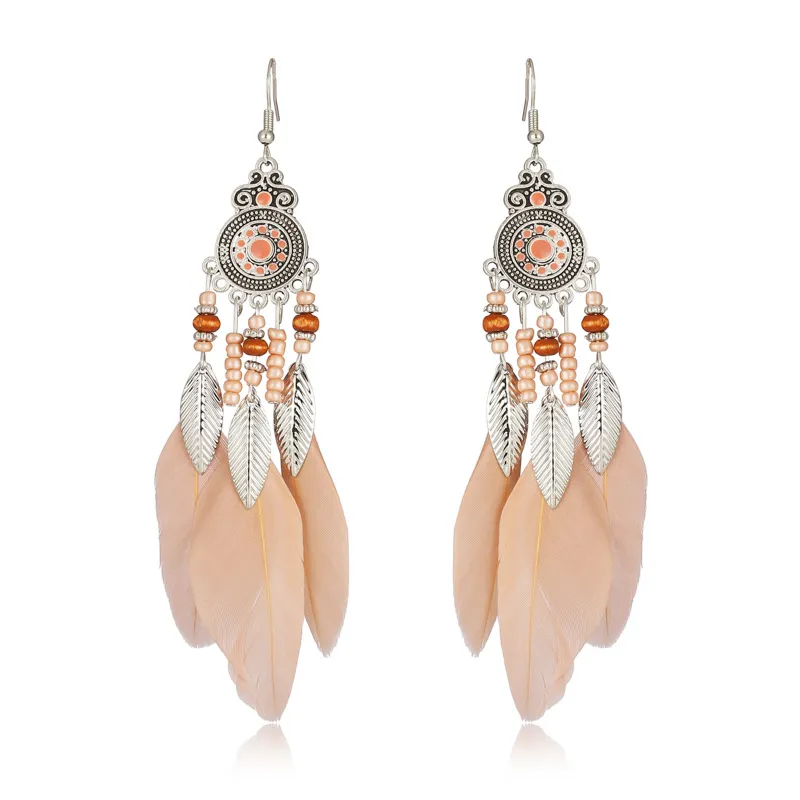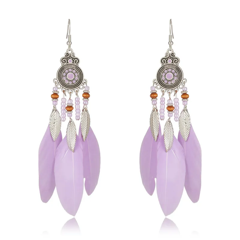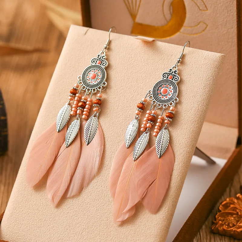 Feather Earrings – Round Drop Oil Craft Retro Style