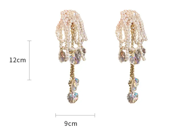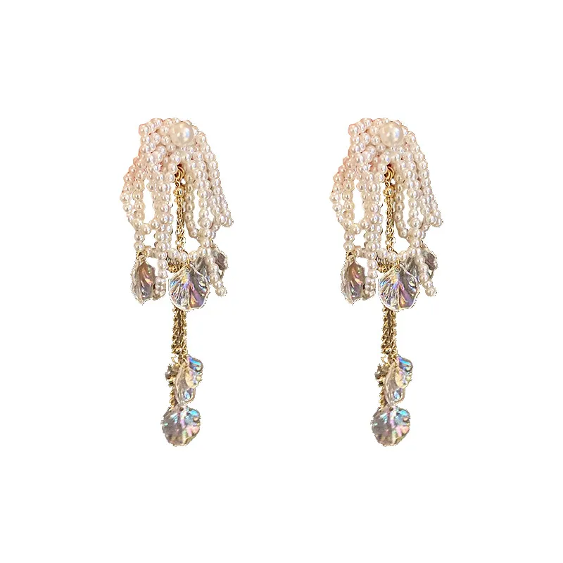 Female Exaggerated Long Pearl Earrings Shell Bow Tassel Earrings