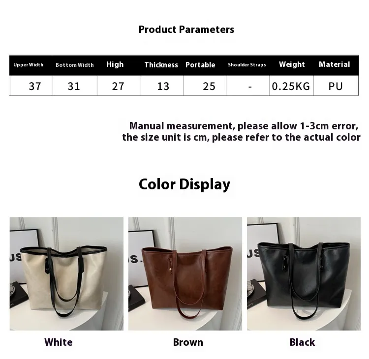 The Female Versatile Commuting Shoulder Tote Bag is not just about functionality—it's also a stylish accessory that elevates any outfit. With its clean lines, elegant silhouette, and minimalist design, this bag offers a sophisticated touch to your look. Whether you're heading to work or meeting friends for a casual outing, this tote bag adds a polished, chic element to your ensemble.