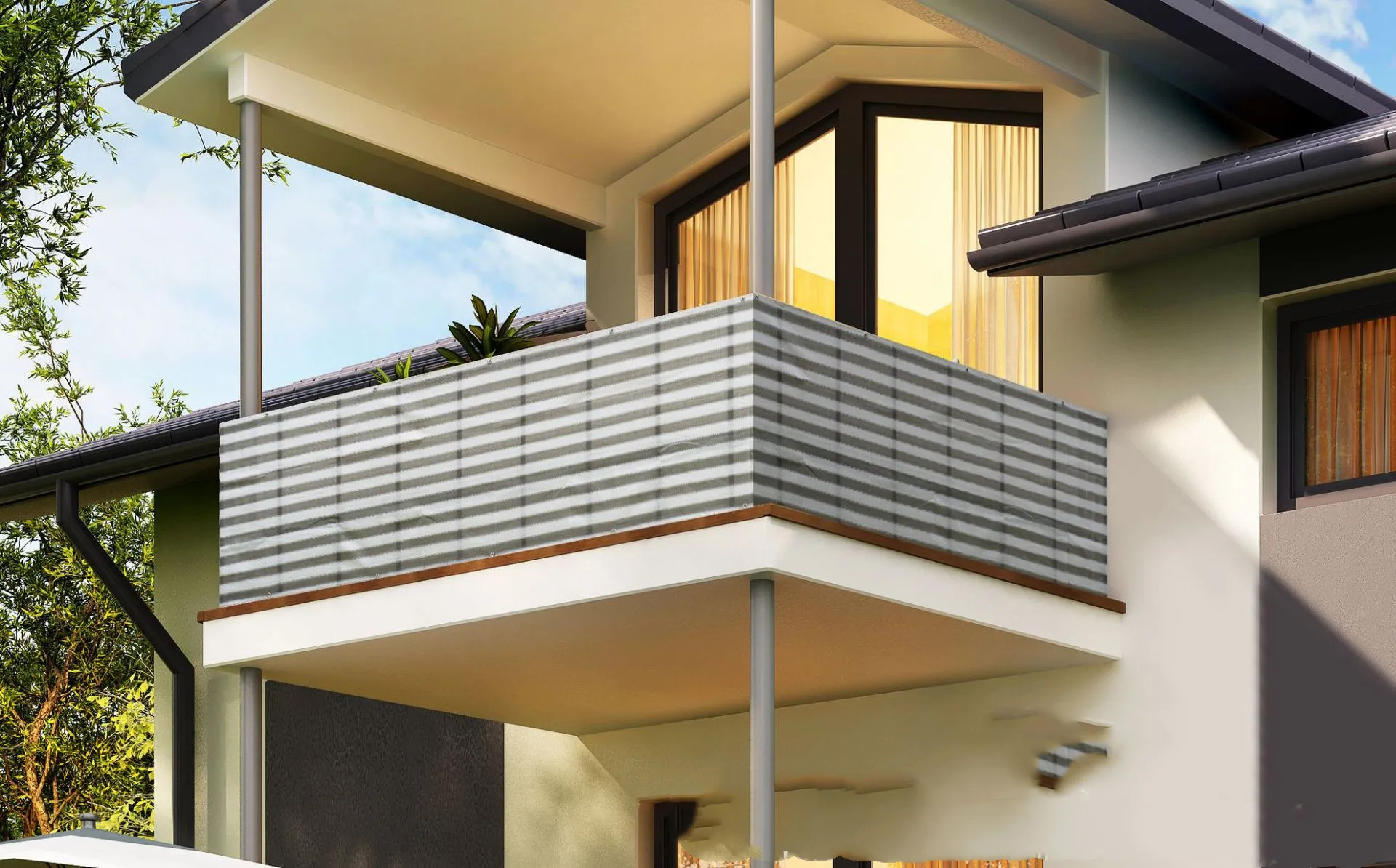 Fabric privacy screens are one of the most common options for homeowners looking for a flexible, budget-friendly solution. Made from durable, weather-resistant materials such as polyester or polyethylene, fabric screens provide excellent privacy while being lightweight and easy to install. Many fabric screens come with reinforced grommets for secure attachment to fences or railings.