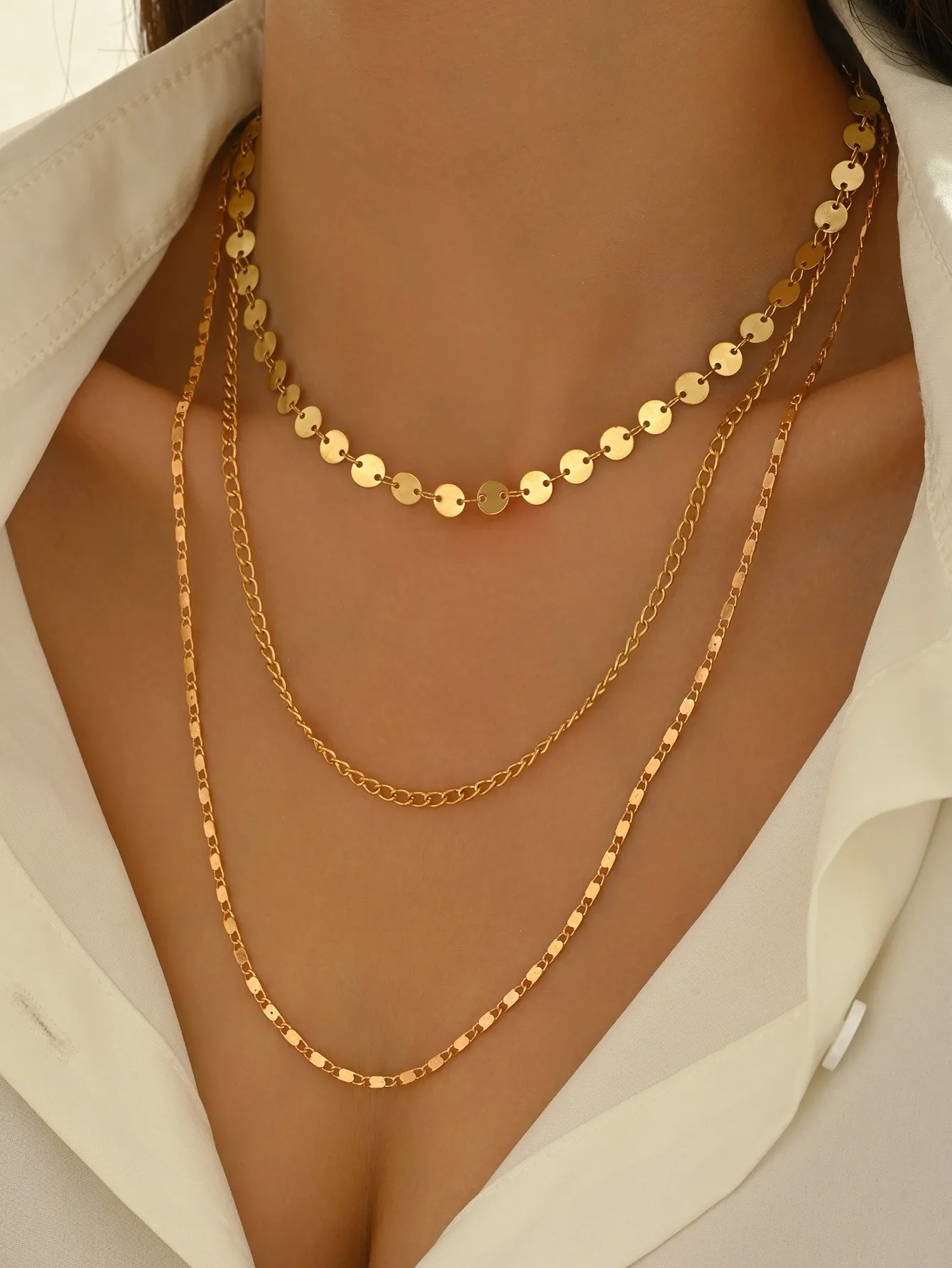 Featuring a distinctive double-hole wafer pendant, this necklace set stands out as a stylish statement piece. Its creative design adds charm and personality to your everyday wardrobe.