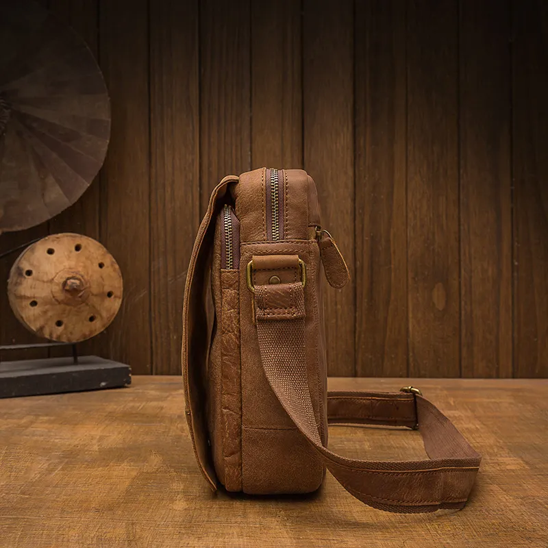 The First Layer Cowhide Men's Messenger Casual Business Bag combines practicality with style, making it the ideal