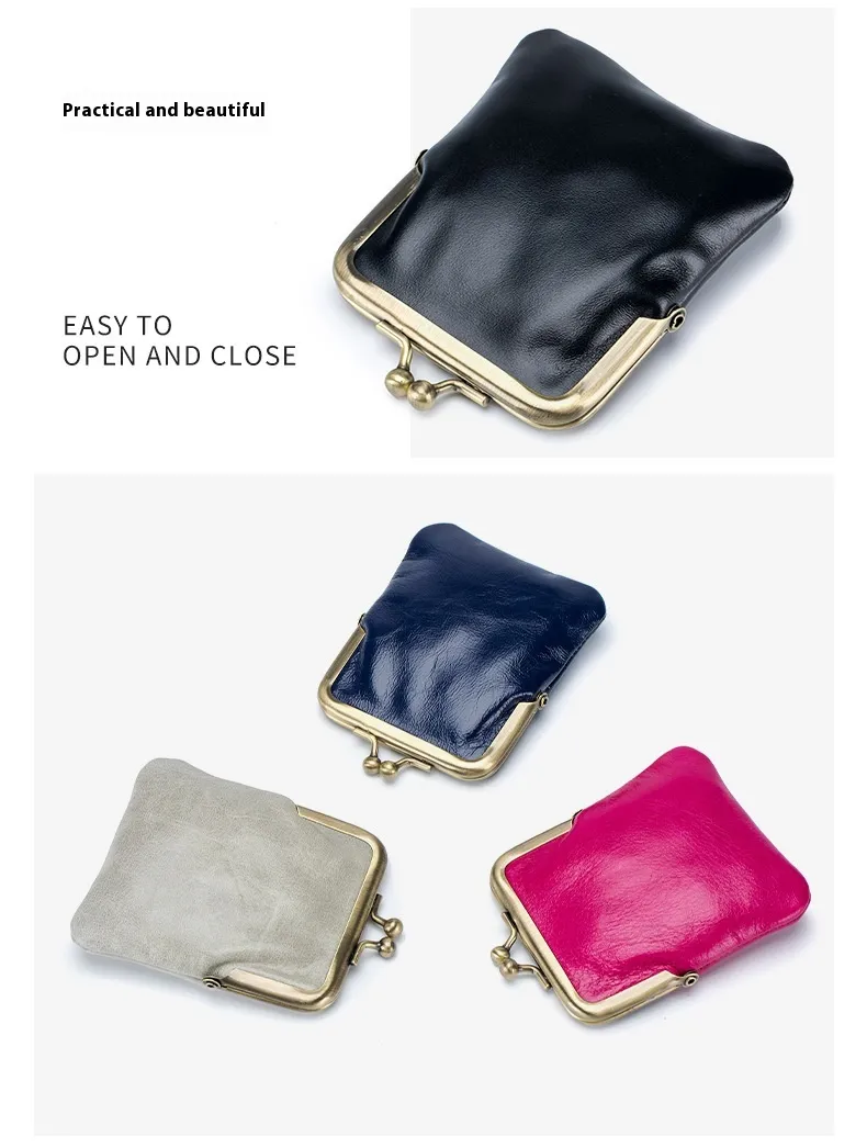 First Layer Oil Wax Cowhide Retro Compact Clip Coin Purse